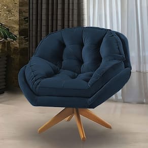 Poltrona Giratória Chicago Veludo Base De Madeira - Pallazio Cor Azul Marinho - Blush