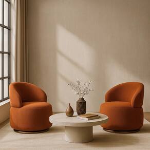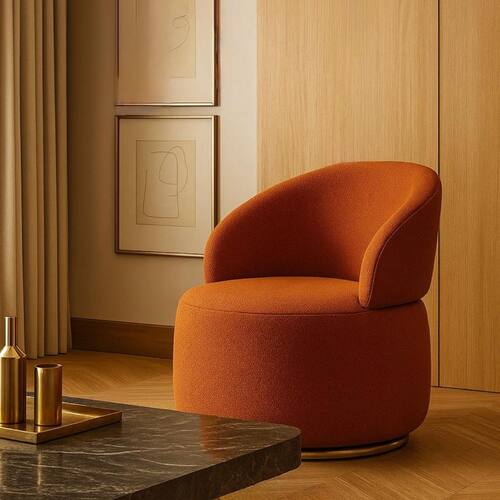 Poltrona Giratória com Base Dourada em Aço Carbono Bella - Exclusiva Boulclè Terracota -