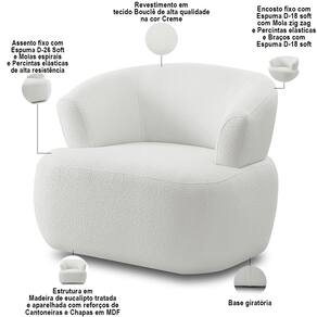 Com design minimalista, mas com uma presença marcante, a Poltrona Giratória Orgânica Para Sala Living Florea M05 Bouclê Creme, da Lyam Decor, é a peça que falta para deixar o seu ambiente sofisticado e elegante. Desenvolvida com materiais de qualidade, essa poltrona orgânica é sinônima de conforto e bem-estar, já que é um estofado feito para durar e imprimir as mais inesquecíveis experiências, seja durante a leitura de um livro, um momento de silencio ou até mesmo durante a conversa com os amigos. O fato é que tudo se tornará mais intenso e especial com a Poltrona Florea. Então, se você quer transformar o seu ambiente, da sala de estar ao quarto, do living ao escritório, essa poltrona giratória é o que precisa.
