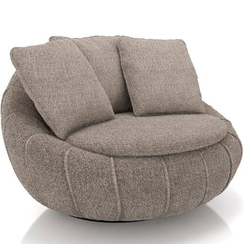 SupplierSimpleName: Poltrona Giratória Para Sala de Estar Decorativa Kira M03 Bouclê Bege Escuro - Lyam Decor