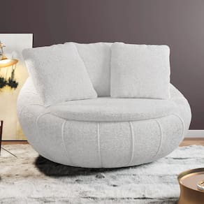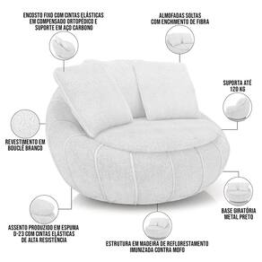 Poltrona Giratória Para Sala de Estar Decorativa Kira M03 Bouclê Branco - Lyam Decor