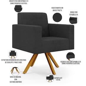 Se você está buscando por qualidade e conforto unidos em um único produto, a Poltrona Giratória Sala de Estar Base de Madeira Helô L02 Bouclê Preto - Lyam Decor vem para superar todas as suas expectativas! Extremamente sofisticada, conta com base giratória de madeira na cor castanho que conversa super bem com seu revestimento de acabamento impecável, transmitindo requinte para o restante da decoração.