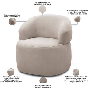 A Poltrona Giratória Sala de Estar Living Orgânico Carmen F04 Veludo Bege, da Lyam Decor, é uma peça única e versátil, capaz de transformar a decoração de qualquer ambiente.