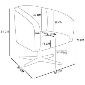 Altura do chão ao braço: 70 Cm