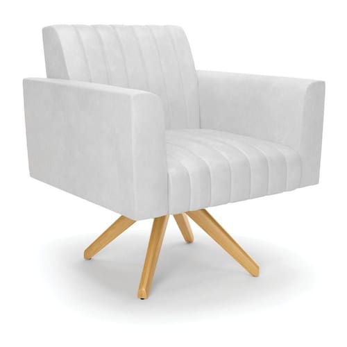 Poltrona Giratória Viena Gomada Corano Base De Madeira Ma30 - D'rossi Cor Branco Quer uma decoração única e sofisticada? A Poltrona Viena é ideal para quem está em busca de um móvel versátil e diferenciado. Esse tipo de peça é ideal para ambientes modernos e descontraídos. Vem com uma ideia totalmente diferente, devido sua curva e forma suave, os detalhes gomados do tecido são tendências de decoração atuais. Uma dica legal de complemento é escolher almofadas que combinem com a poltrona. Sua estrutura é confeccionada em madeira de eucalipto proveniente de reflorestamento, o estofamento do assento é composto de espuma prorelax D-23 no encosto, e é revestido em Corano um tecido aconchegante, resistente e extremamente luxuoso. Sua sustentação é dada pela Base Giratória Madeira MA30, suportando em média até 120 Kg. Crie um lindo efeito visual, em qualquer lugar da sua casa ou escritório! Garanta já sua Poltrona Viena. Dimensões da Poltrona: