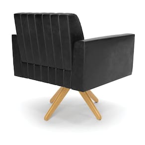 Poltrona Giratória Viena Gomada Corano Preto Base De Madeira Ma30 - D'rossi Quer uma decoração única e sofisticada? A Poltrona Viena é ideal para quem está em busca de um móvel versátil e diferenciado. Esse tipo de peça é ideal para ambientes modernos e descontraídos. Vem com uma ideia totalmente diferente, devido sua curva e forma suave, os detalhes gomados do tecido são tendências de decoração atuais. O tom Preto vem ganhando cada vez mais espaço no mercado, uma cor que traz elegância e combina com vários tipos de decoração. Uma dica legal de complemento é escolher almofadas que combinem com a poltrona. Sua estrutura é confeccionada em madeira de eucalipto proveniente de reflorestamento, o estofamento do assento é composto de espuma prorelax D-23 no encosto, e é revestido em Corano um tecido aconchegante, resistente e extremamente luxuoso. Sua sustentação é dada pela Base Giratória Madeira MA30, suportando em média até 120 Kg. Crie um lindo efeito visual, em qualquer lugar da sua casa ou escritório! Garanta já sua Poltrona Viena. Dimensões da Poltrona: