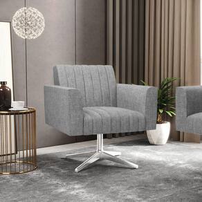 Quer uma decoração única e sofisticada? A Poltrona Viena é ideal para quem está em busca de um móvel versátil e diferenciado. Esse tipo de peça é ideal para ambientes modernos e descontraídos. Vem com uma ideia totalmente diferente, devido sua curva e forma suave, os detalhes gomados do tecido são tendências de decoração atuais. O tom Grafite vem ganhando cada vez mais espaço no mercado, uma cor que traz elegância e combina com vários tipos de decoração. Uma dica legal de complemento é escolher almofadas que combinem com a poltrona. Sua estrutura é confeccionada em madeira de eucalipto proveniente de reflorestamento, o estofamento do assento é composto de espuma prorelax D-23 no encosto, e é revestido em Linho um tecido aconchegante, resistente e extremamente luxuoso. Sua sustentação é dada pela Base Giratória Cromada, suportando em média até 115 Kg. Crie um lindo efeito visual, em qualquer lugar da sua casa ou escritório! Garanta já sua Poltrona Viena.