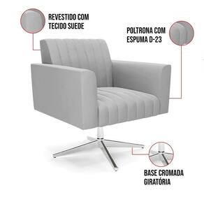Poltrona Giratória Viena Gomada Suede Base Cromada - D`rossi Cor Cinza