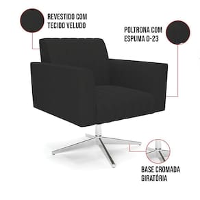 Quer uma decoração única e sofisticada? A Poltrona Viena é ideal para quem está em busca de um móvel versátil e diferenciado. Esse tipo de peça é ideal para ambientes modernos e descontraídos. Vem com uma ideia totalmente diferente, devido sua curva e forma suave, os detalhes gomados do tecido são tendências de decoração atuais. Uma dica legal de complemento é escolher almofadas que combinem com a poltrona. Sua estrutura é confeccionada em madeira de eucalipto proveniente de reflorestamento, o estofamento do assento é composto de espuma prorelax D-23 no encosto, e é revestido em Veludo um tecido aconchegante, resistente e extremamente luxuoso. Sua sustentação é dada pela Base Giratória Cromada, suportando em média até 120 Kg. Crie um lindo efeito visual, em qualquer lugar da sua casa ou escritório! Garanta já sua Poltrona Viena.