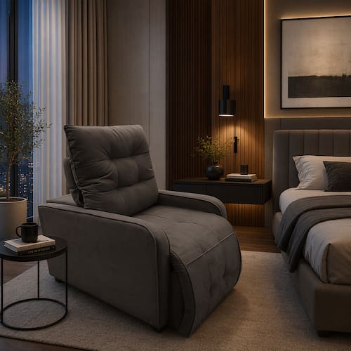 Madeira de Eucalipto, Espuma D-26, SuedeVendido e entregue por SILVERIO DECOR