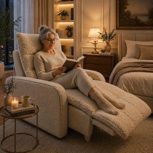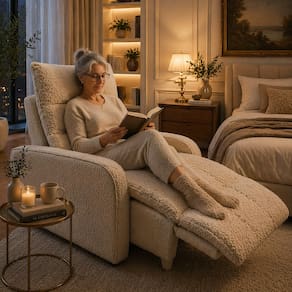 Estrutura em Madeira de Eucalipto, Espuma D-26, Revestimento em Boucle.Vendido e entregue por SILVERIO DECOR