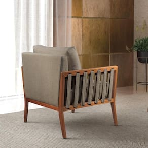 Com detalhes em tiras de tecido nas laterais, a poltrona Helena se resume em charme, elegância e qualidade. Um modelo que une conforto e beleza para o seu ambiente.