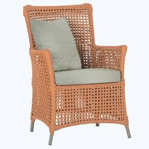 A corda nautica adiciona um toque de rusticidade moderna, enquanto o estofado impermeavel garante que sua poltrona esteja sempre impecavel, mesmo apos uma chuva inesperada ou um acidente com liquidos.