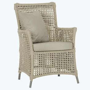 A corda nautica adiciona um toque de rusticidade moderna, enquanto o estofado impermeavel garante que sua poltrona esteja sempre impecavel, mesmo apos uma chuva inesperada ou um acidente com liquidos.