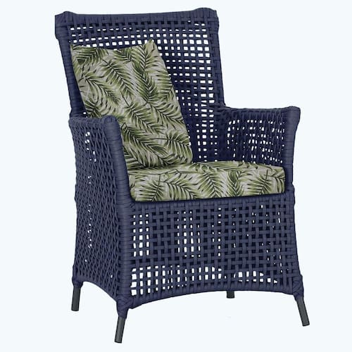 A corda nautica adiciona um toque de rusticidade moderna, enquanto o estofado impermeavel garante que sua poltrona esteja sempre impecavel, mesmo apos uma chuva inesperada ou um acidente com liquidos.