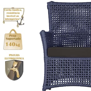 A corda náutica adiciona um toque de rusticidade moderna, enquanto o estofado impermeável garante que sua poltrona esteja sempre impecável, mesmo após uma chuva inesperada ou um acidente com líquidos.