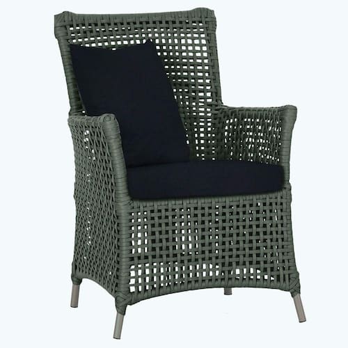 A corda nautica adiciona um toque de rusticidade moderna, enquanto o estofado impermeavel garante que sua poltrona esteja sempre impecavel, mesmo apos uma chuva inesperada ou um acidente com liquidos.