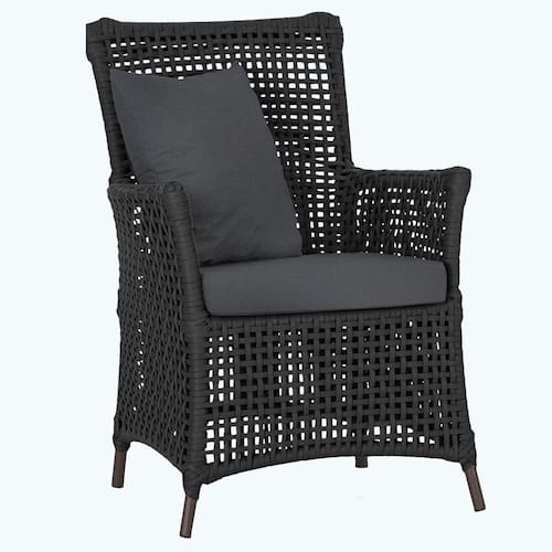 A corda nautica adiciona um toque de rusticidade moderna, enquanto o estofado impermeavel garante que sua poltrona esteja sempre impecavel, mesmo apos uma chuva inesperada ou um acidente com liquidos.