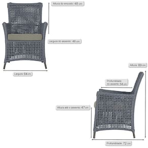 A corda nautica adiciona um toque de rusticidade moderna, enquanto o estofado impermeavel garante que sua poltrona esteja sempre impecavel, mesmo apos uma chuva inesperada ou um acidente com liquidos.