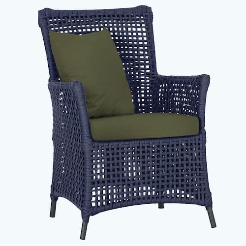 A corda nautica adiciona um toque de rusticidade moderna, enquanto o estofado impermeavel garante que sua poltrona esteja sempre impecavel, mesmo apos uma chuva inesperada ou um acidente com liquidos.