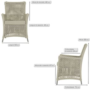 Item Incluso: 02 Poltronas Igapó Alumínio Medidas da Poltrona: Altura Total: 89 cm Largura Total: 64 cm Profundidade Total: 72 cm
