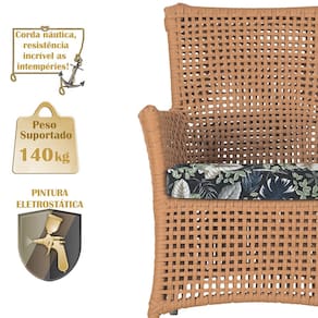 A corda náutica adiciona um toque de rusticidade moderna, enquanto o estofado impermeável garante que sua poltrona esteja sempre impecável, mesmo após uma chuva inesperada ou um acidente com líquidos.