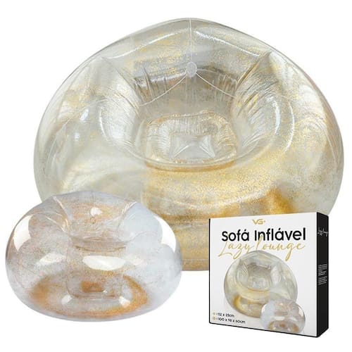 - Dimensões Puff. 52 x 52 x 25cm;Poltrona InflÃvel Lazy Lounge Glitter Com Puff VG Plus Gold