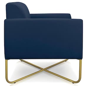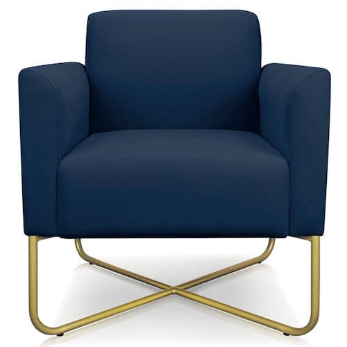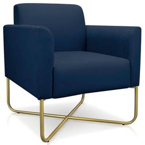 Poltrona Decorativa Isabella Base X Suede Azul Marinho/dourado - Gran Belo