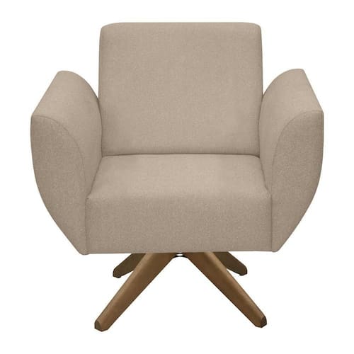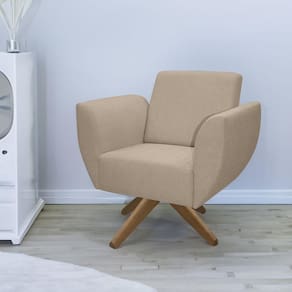 A poltrona Jolly com base em madeira e pés giratórios, apresenta um sofisticado design, trazendo um toque de requintado e charme ao seu ambiente. Sua estrutura confeccionada em eucalipto tratado garante a qualidade e durabilidade desta poltrona.