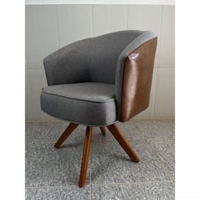 Poltrona Julia Giratoria Com Couro Pes Madeira - Luxo Decor Cinza/couro A Poltrona Julia é a escolha ideal para quem busca sofisticação aliada ao máximo de conforto. Com linhas curvas e design orgânico, ela se adapta com facilidade a diferentes estilos de decoração, sendo perfeita para compor salas de estar, quartos, recepções ou até mesmo home offices com um toque moderno e acolhedor. Seu acabamento refinado e estrutura robusta garantem durabilidade e funcionalidade no dia a dia. Equipada com base giratória, assento fixo com espuma D28 e encosto com espuma D26 e pluma siliconada, proporciona uma experiência de conforto superior, ideal para momentos de relaxamento ou socialização. A combinação de madeira de reflorestamento e materiais de alto padrão reflete o compromisso com sustentabilidade e qualidade.