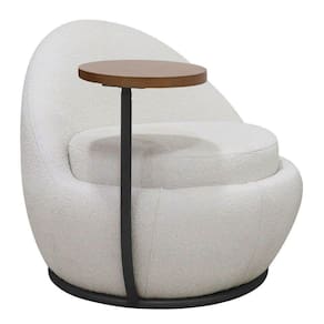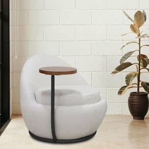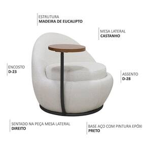 Poltrona Kaira Mesa Lateral Direita Base Fixa Preto Bouclé Creep Off White - Nexta Casa