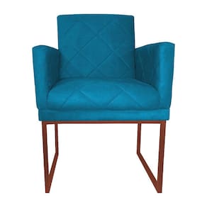 Poltrona Klara Suede Azul Turquesa Base Metálica Cobre - Vallisa Decor