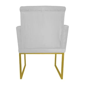 Poltrona Klara Suede Branco Base Metálica Industrial Dourada - Vallisa Decor