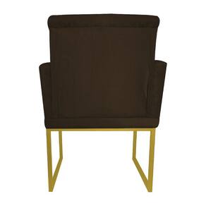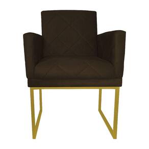 Poltrona Klara Suede Marrom Base Metálica Dourada - Vallisa Decor