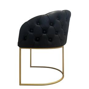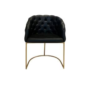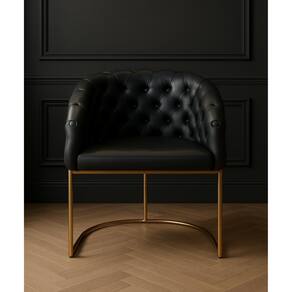 Poltrona Lá Vie com Capitonê em Courino Preto e Base Dourada – Exclusiva Dourado Automotivo -
