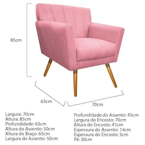 Gostaria de um móvel que trouxesse mais elegância e sofisticação para o seu lar? A Poltrona Laura é sua melhor opção! Com característica moderna e com acabamento de qualidade, este produto atenderá suas expectativas! Não perca essa oportunidade e adquira já a sua! Especificações Técnicas da Poltrona Decorativa Laura: - Altura: 85 cm; - Largura: 70 cm; - Profundidade: 63 cm; - Altura do Assento: 50 cm; - Largura do Assento: 50 cm; - Altura do Braço: 65 cm; - Profundidade do Assento: 45 cm; - Largura do Encosto: 70 cm; - Espessura do Assento: 14 cm; - Altura do Encosto: 41 cm; - Espessura do Encosto: 5 cm; - Altura dos Pés: 30 cm; - Peso: 20 kg. - Peso Suportado: 120 kg. Diferenciais da Poltrona Decorativa Laura: - Material da Estrutura: fabricado com Madeira Pinus e Eucalipto Reflorestada, e alguns detalhes em MDF; - Tipo de Assento: estofado e com espuma de densidade D-26; - Tipo de Encosto: estofado e com espuma de densidade D-18; - Detalhes dos Pés: acompanha kit de pés (4 pés) de madeira, no estilo Palito , com alta resistência; - Volumes: nessa compra você receberá um único produto. Recomendações de limpeza: -Limpar com flanela limpa e seca. Não molhar o móvel e não expor em lugar úmido ou próximo de fontes de calor. Não usar produtos abrasivos. Observações Importantes: - As imagens ambientadas são meramente ilustrativas e podem apresentar itens que não compõe o produto; - Objetos decorativos que aparecem na foto não acompanham o produto; - As cores do produto podem variar de acordo com o monitor, a iluminação do ambiente, ou sua percepção visual; - A Poltrona Decorativa Laura chegará montada para você, bastando rosquear os pés; - Confira as dimensões antes da compra e certifique-se de que o produto passará por elevadores, portas e corredores, já que nossa não inclui a subida de lances de escada, ou o de produtos; - Ao receber seus produtos, verifique no ato do qualquer dano na embalagem. Caso tenha alguma , favor não assinar o de (A transportadora tem obrigação de esperar a conferência); - Produto para uso residencial em ambiente interno, não devendo ficar exposto diretamente ao sol, calor e umidades excessivas.