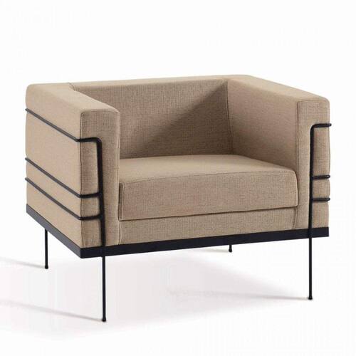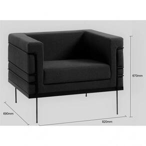 Poltrona fabricada com madeira de eucalipto revestido com espuma D28 e tecido. Estrutura em aço carbono pintado. Seu ambiente irá ficar diferenciado e moderno com esta poltrona, que foi inspirada em um clássico do design.