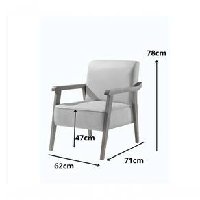 Altura 78 cm Profundidade 71 cm Largura 62 cm Quantidade de lugares 1 Peso suportado por assento 120 kg Tecido Linho Premium Material da Estrutura Eucalipto Assento Espuma D28 soft (qualidade contínua 5 cm espessura) Tipo do Encosto Fixo com espuma D28 Soft de 4 cm Base / Braço Madeira Maciça Exige montagem? Não.