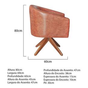 Especificações Técnicas da Poltrona Luiza:- Altura: 80 cm;- Largura: 69 cm;- Profundidade: 60 cm;- Altura do Assento: 45 cm;- Largura do Assento: 47 cm;- Profundidade do Assento: 47 cm;- Altura do Encosto: 38 cm;- Espessura do Assento: 15 cm;- Espessura do Encosto: 10 cm;- Altura dos Pés: 30 cm;- Peso: 20 kg.- Peso Suportado: 120 kg.Diferenciais da Poltrona Luiza:- Material da Estrutura: fabricado com Madeira Pinus e Eucalipto Reflorestada, e alguns detalhes em MDF;- Tipo de Assento: estofado e com espuma de densidade D-18;- Tipo de Encosto: estofado e com espuma de densidade D-18;- Detalhes dos Pés: acompanha base giratória, com alta resistência;Recomendações de limpeza:-Limpar com flanela limpa e seca. Não molhar o móvel e não expor em lugar úmido ou próximo de fontes de calor. Não usar produtos abrasivos.Observações Importantes:- As imagens ambientadas são meramente ilustrativas e podem apresentar itens que não compõe o produto;- Objetos decorativos que aparecem na foto não acompanham o produto;- As cores do produto podem variar de acordo com o monitor, a iluminação do ambiente, ou sua percepção visual;- A Poltrona Luiza chegará desmontada para você, bastando encaixar a base giratória;- Confira as dimensões antes da compra e certifique-se de que o produto passará por elevadores, portas e corredores;- Produto para uso residencial em ambiente interno, não devendo ficar exposto diretamente ao sol, calor e umidades excessivas.