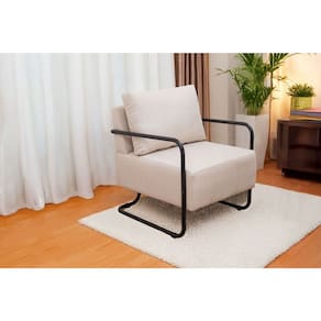 Características: Estrutura: Madeira de Eucalipto Tratada Tecido: Linho Espuma: D23 Encosto: 100 Fibra Pés: Aço Galvanizado e Pintura Epox Peso Suportado: Até 150 kg sem impacto.
