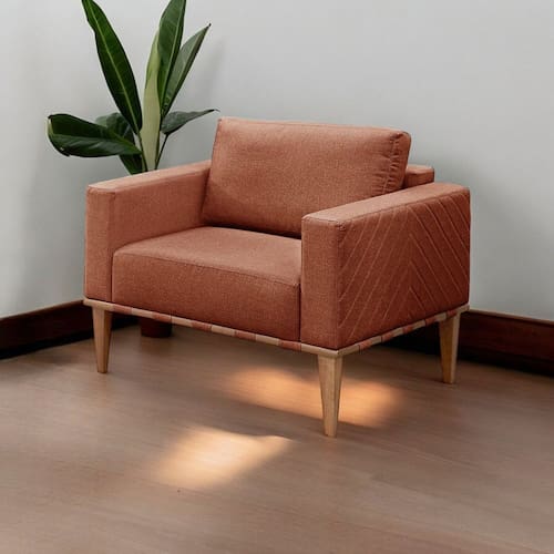 Imagens reais, tonalidade pode variar Verificar dimensões para acesso ao local de uso Acompanha Almofadas extras: Não Acompanha Puff: Não Almofada do assento: Não Possui Almofada do encosto: Removível Altura do assento até o chão: 46 cm Altura do Encosto: 31 cm Altura dos Pés: 26 cm Ambiente Principal: Sala de Estar Complexidade da Montagem: Baixa: pode ser montado por uma pessoa sozinha Cor: Terracota Cor do Produto: Terracota Design Assinado: Não Enchimento do Braço: Espuma D-26 Encosto para a Cabeça: Não Estampado: Não Extensível: Não Informações Complementares: Bordado na lateral do braço. Detalhe no acabamento da madeira da base. Itens Inclusos: 1 Poltrona Linha ou Coleção: PREMIUM Material do Braço: Madeira Estofada Material dos Pés: Madeira Maciça Modelo de Poltrona: Fixo Necessita Montagem: Sim Origem do Produto: Nacional Peso: 21,7 kg Possui Percintas Elásticas: Sim Possui Pés: 04 Possui Rodízio: Não Recomendações de Uso, Manutenção e Limpeza: Utilizar um pano levemente umedecido, seguido de pano seco.Evitar exposição ao sol, para que não sofra alterações na cor do tecido.Não limpar com escovas ou semelhantes. Sistema de Montagem: Enroscar os pés na base Suporta Até (kg): 140 kg Tecido Predominante: Linho Tipo de Assento: Fixo Tipo de Encosto: Fixo Tipo de Poltrona: Decorativa