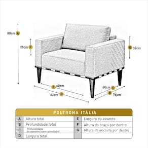 Altura: 80 cm Largura: 82 cm Profundidade: 76 cm Peso: 21,7 Kg Características: