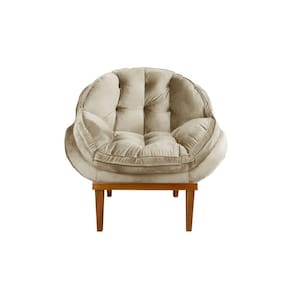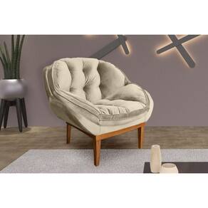 Poltrona Decorativa Marcela Em Tecido Veludo Com Base Em Madeira