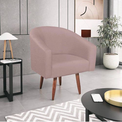 Poltrona Marilia Pés Palito Linho Yescasa Rose - Rosa