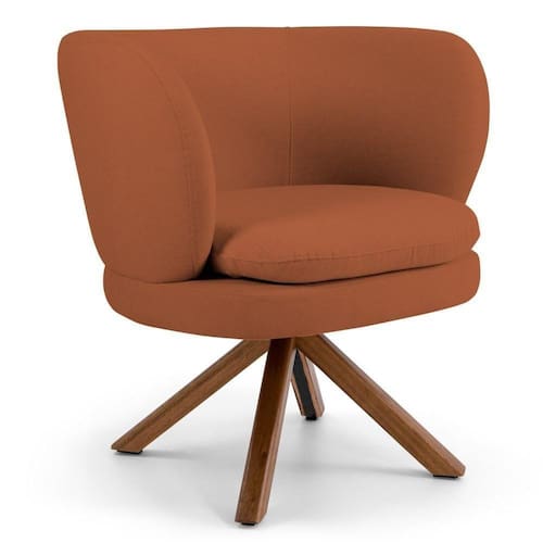 - Base giratória em madeira reforçada na tonalidade castanho.