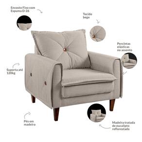 Caracteristicas: Marca: Movellu Home Modelo: Miami Estrutura: Madeira de Reflorestamento Tratada -eucalipto- devidamente aparelhada Reforcos de Cantoneiras e Chapas em MDF Percintas do Encosto: Elasticas Percintas do Assento: Elasticas Material dos Pes: Madeira Parafusado 15cm Densidade da Espuma do Assento: D-28 Altura do Chao ate o Assento: 47cm Profundidade do Assento: 50cm Material do Encosto: 100 Fibra Siliconada Altura do Encosto: 40cm Densidade da Espuma do Braco: D-23 Largura do Braco: 10cm Altura do Braco: 63cm Tipo de Encosto: Fixo com Almofada Solta Tipo de Assento: Fixo