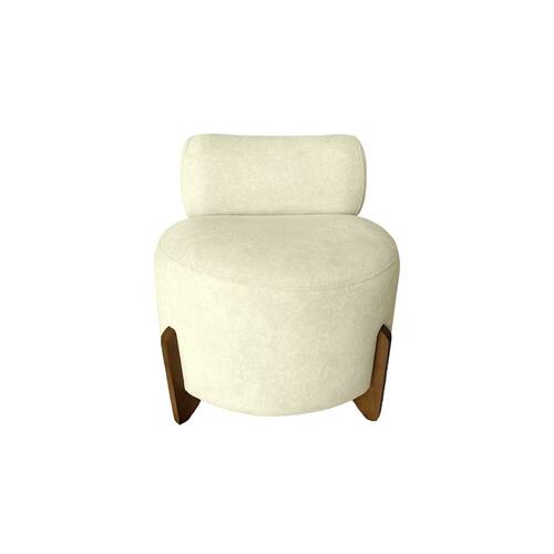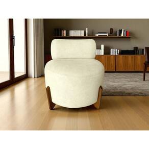 Estofada em tecido bouclé (tecido felpudo de toque macio e aconchegante), oferece não apenas sofisticação, mas também durabilidade e fácil manutenção. Sua base em madeira garante estabilidade e charme natural, harmonizando com diferentes estilos de decoração.