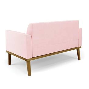 Poltrona Namoradeira Decorativa Pés Fixo Em Madeira Castanho Suede Rosa Bebê - Blush