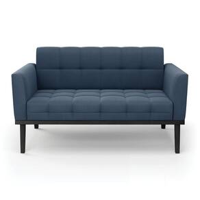 Poltrona Namoradeira Decorativa Pés Fixo Em Madeira Preto Suede Azul Marinho