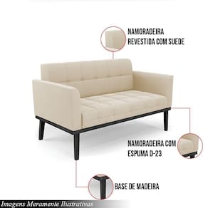 Material da Estrutura: Madeira de Eucalipto ReflorestamentoAssento: Espuma D-23Encosto: Espuma D-23Material dos Pés: Base Fixa em MadeiraRevestimento: SuedePeso Suportado: 120kgConteúdo da Embalagem: 1 NamoradeiraNecessita de Montagem: Somente dos pés Instruções/Cuidado: Evitar exposição ao sol, para que o produto não sofra alterações na cor do tecido. Não limpar com escovas ou produtos abrasivos.